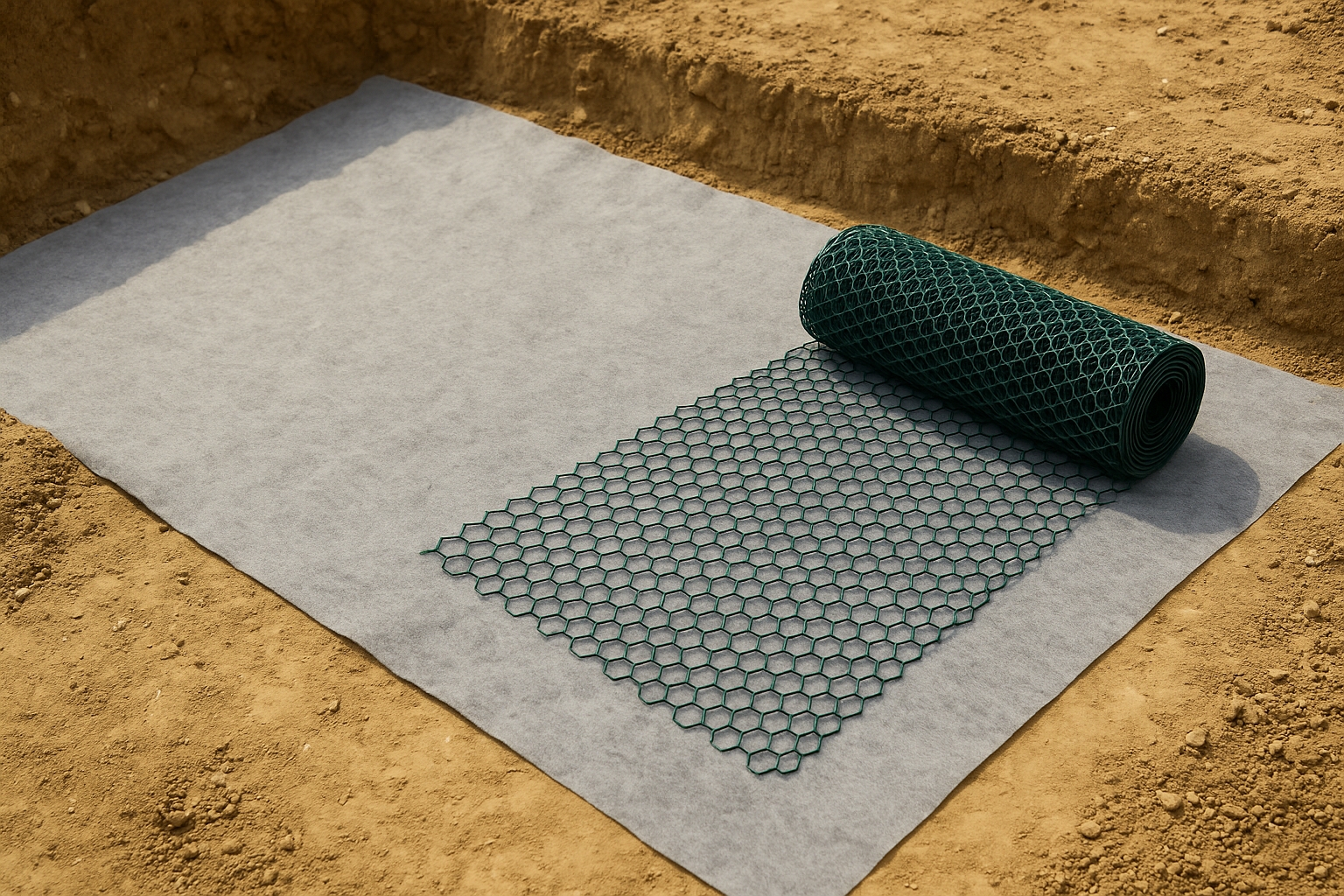 - Beim Teichbau: Das Gitter wird vollflächig unter der Teichfolie ausgelegt, um sie vor Durchbiss zu schützen.
